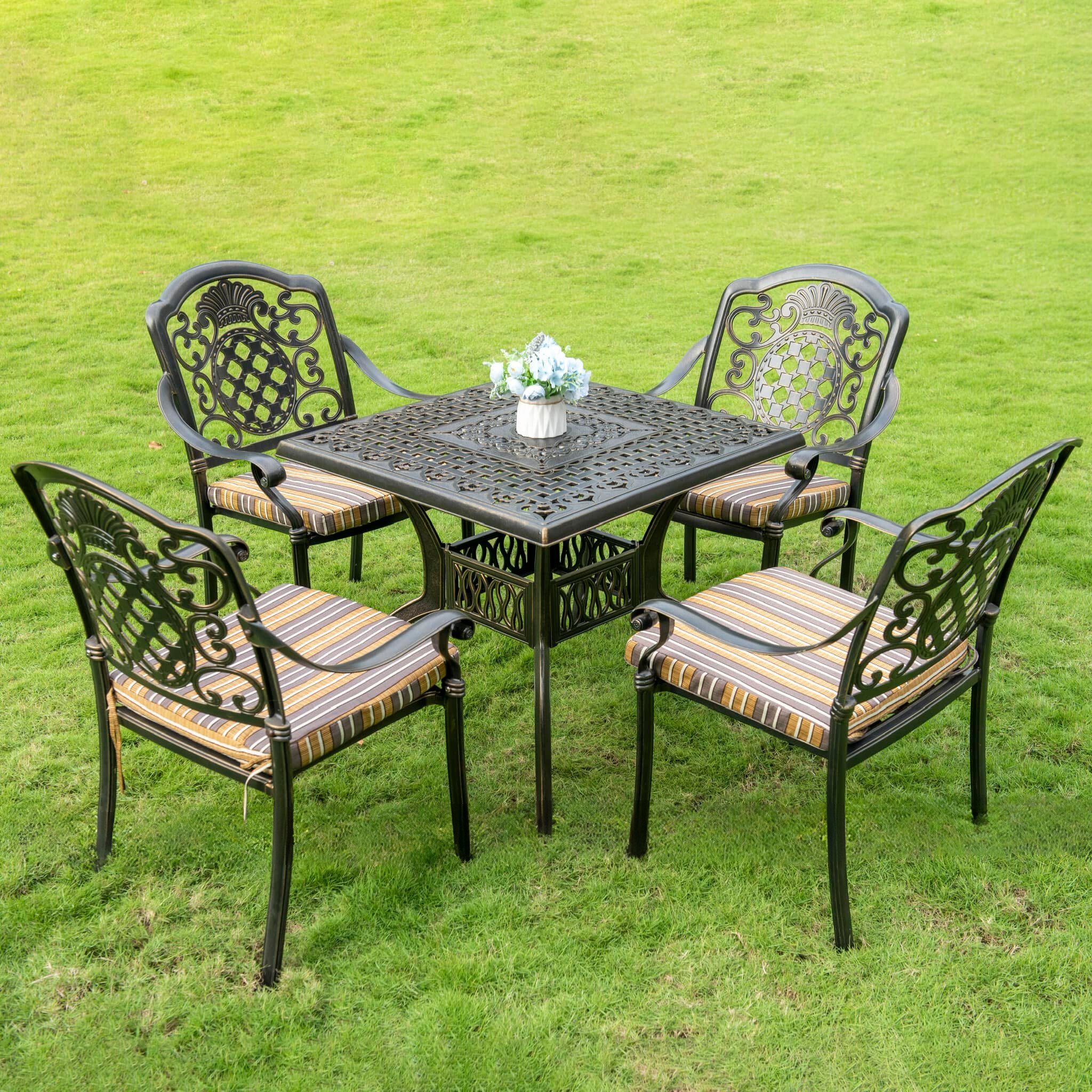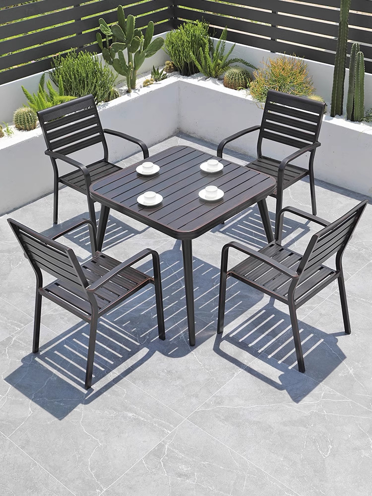 Bàn ghế ngoài trời nhôm đúc vuông