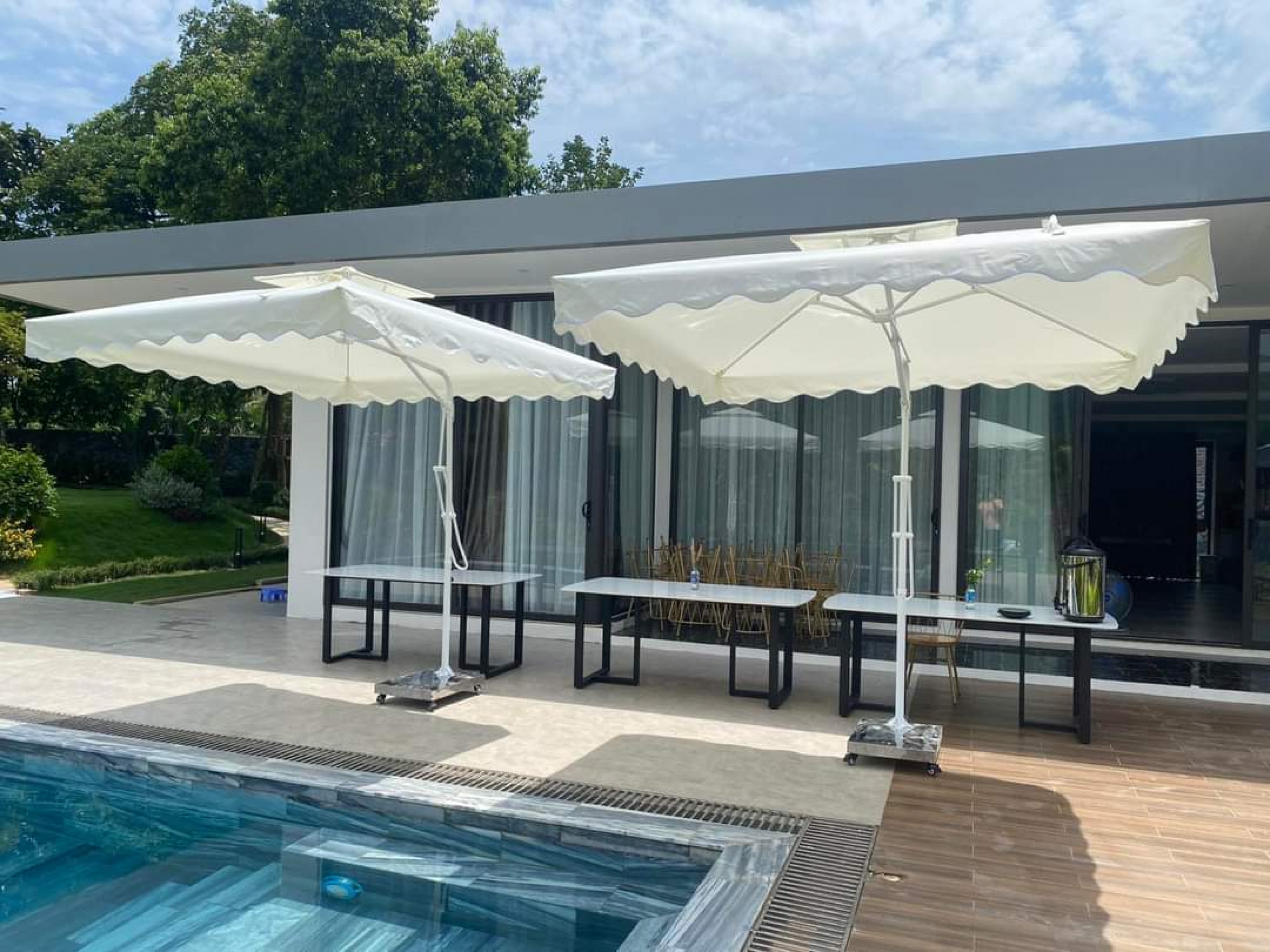 • Ô dù hòa phát lệch tâm vuông 3m màu trắng